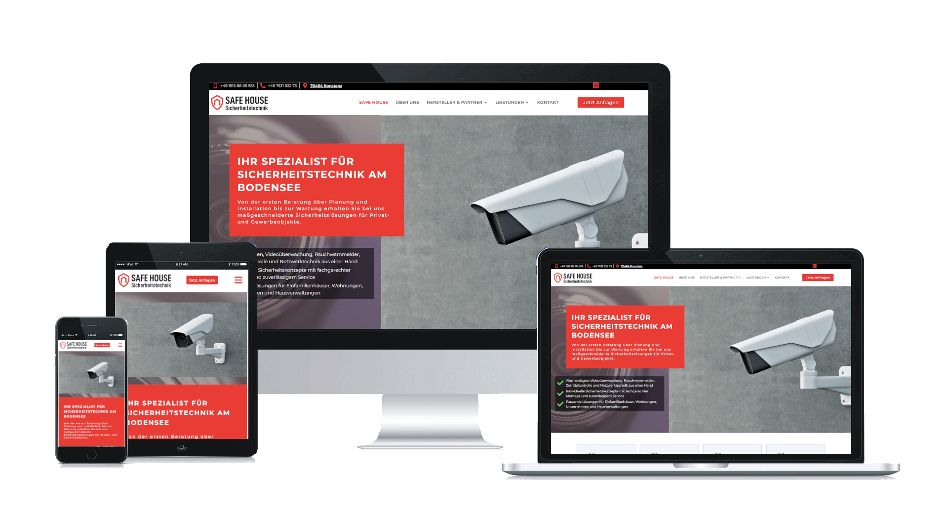 Safe House – Sicherheitstechnik Bodensee benötigte eine Website, die die wichtigsten Leistungen im Bereich Alarmanlagen, Videoüberwachung, Brandschutz und Zutrittskontrolle übersichtlich darstellt. Gleichzeitig sollte der Anfrageprozess optimiert werden, um Anfragen strukturiert zu erfassen.
